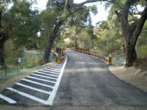 Bridge control and Layout: Gromatici Land Surveying has been retained by Peter Lapitus Construction to provide rough and finished grade staking and layout for a 60' pre-fab bridge over Quiota Creek. This project is for COMB and is being funded to provide fish passage for steelhead trout for the Creek. This project consists of rough grading, including slope staking and layout of bridge abutments so the bridge can easily be "dropped" into place.