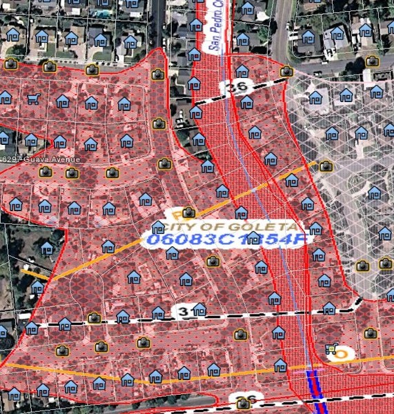 Eric used to live in Ojai and was please to work here on an elevation certificate out on the east end. Using GPS and a robotic total station he was able to get the land owners insurance premiums reduced using an Elevation Certificate. Although we can't produce positive results every time the FEMA flood insurance rate maps are based on "general" flood control mapping and are only accurate within 2.5' in most cases.